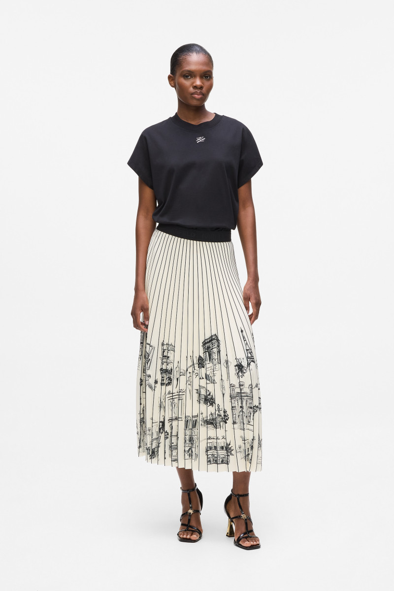 Női pliszírozott midi szoknya midi hosszban. Egyszínű dizájn, amelyet gyönyörű vázlatok díszítenek, megörökítve a párizsi eleganciát. A 100%-os szintetikus rost összetétel tökéletes könnyedséget, formaállandóságot és praktikus karbantartást garantál. A szoknya nagyon kellemes tapintású és kényelmes viselet. Kitűnően kombinálható darab, amely stílusosan kiegészíti sportos-elegáns öltözékedet.