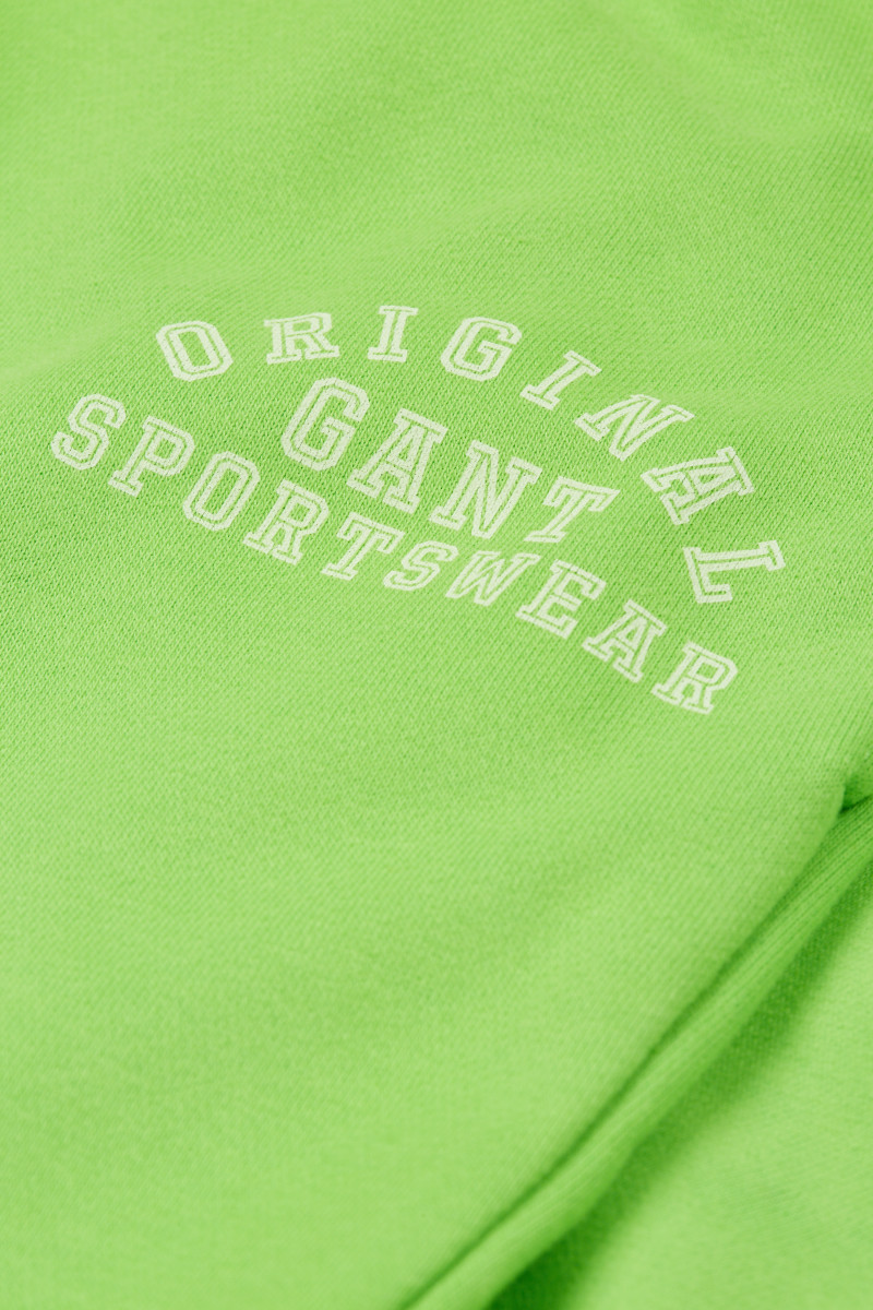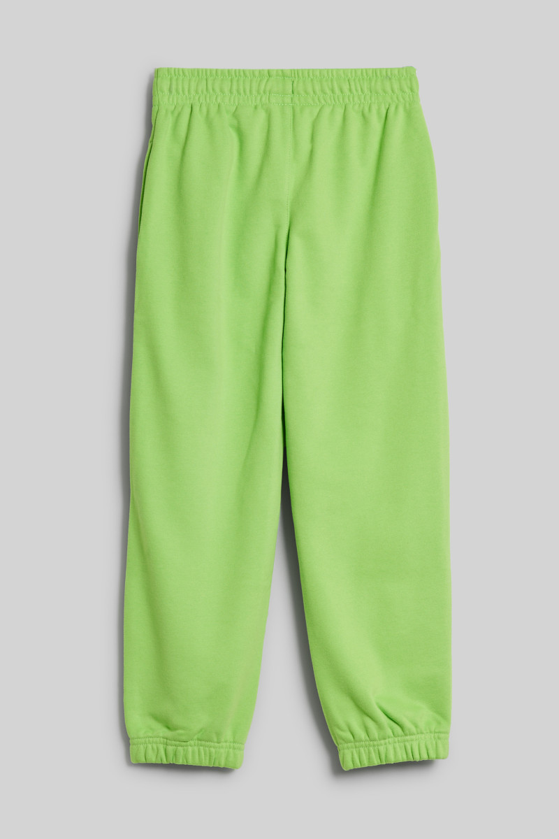 Gyermek melegítő nadrág, praktikus szegélyekkel a lábszáron. Standard ülepmagassággal, rugalmas derékpántba varrt húzózsinórral, amely lehetővé teszi a melegítő nadrág esetleges összehúzását. Kontrasztos márkajelzéssel a bal combon, két ferde oldalzsebbel. A puha tapintású anyag egyedülálló légáteresztő képességet biztosít, ugyanakkor kellemesen melegen tart és rendkívül kényelmes érzést garantál viselés közben. A kiváló minőségű, prémium pamutszálból készült jersey sokáig megőrzi eredeti színét és alakját. Praktikus darab, amely az azonos dizájnú melegítő felsővel kombinálva stílusos megjelenésű szabadidős szettet eredményez.