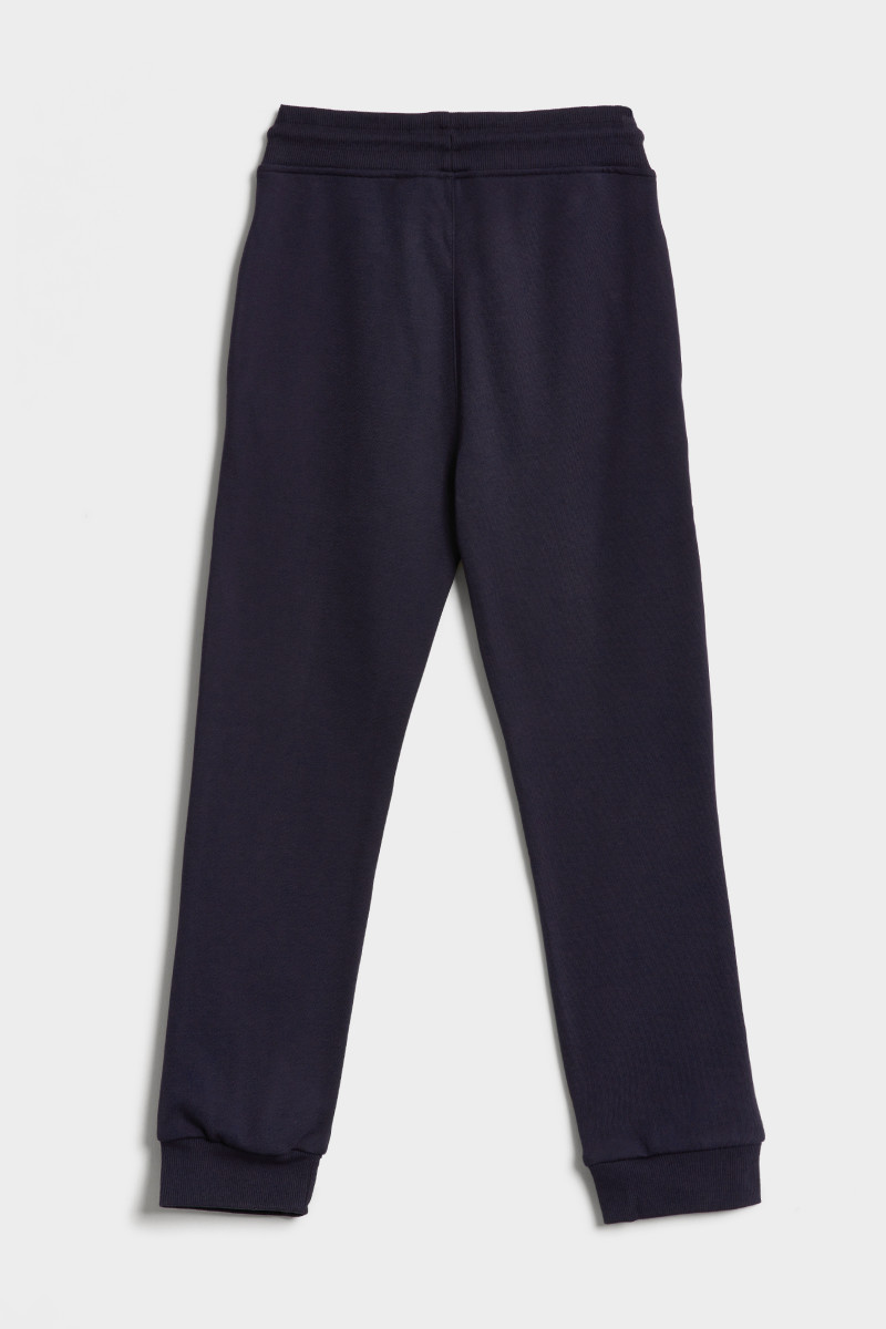 Gyermek melegítő nadrág, praktikus szegélyekkel a lábszáron. Standard ülepmagassággal, rugalmas derékpánttal, amelyben húzózsinór található - ez a nadrág esetleges összehúzásában segít. Két ferde oldalzsebbel, hímzett és ikonikus márkajelzéssel a bal combon. A kiváló minőségű anyag prémium minőségű pamutszálból készült, amely melegen tart és egyedülálló légáteresztő képességet biztosít. A kellemesen puha jersey-nek köszönhetően viselése nagyon kényelmes és rugalmasságának köszönhetően megőrzi eredeti alakját és színét, valamint alacsony a karbantartási igénye. Szabadidős viselet, amely remek választás a sporttevékenységek során, azonban a pihenés pillanataihoz egyaránt.