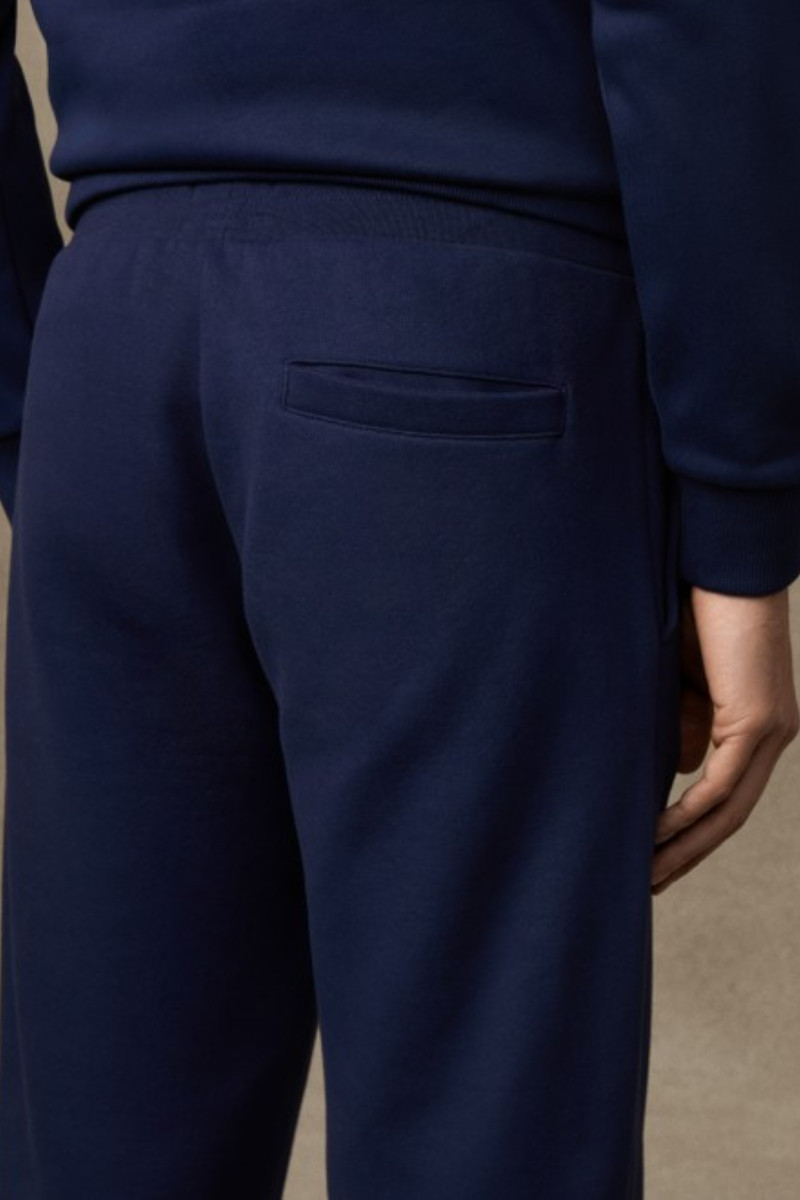 Férfi melegítőnadrág, amely egyenes szabású szárakkal van ellátva. A combon nyomtatott márkajelzéssel. A klasszikus magasságú derékrész rugalmas húzózsinórral állítható. Ez a rendkívül kényelmes darab két oldalsó zsebbel és tágas hátsó zsebbel van ellátva. Az ellenálló anyag sokáig megőrzi eredeti alakját és a prémium minőségű, rugalmas pamut jersey-nek köszönhetően puhaságot és légáteresztő képességet biztosít. Tökéletes szabadidős darab.